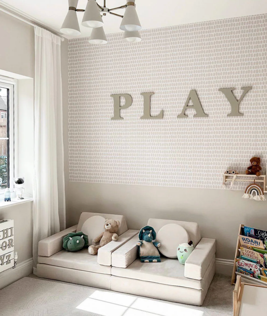 Texture adds warmth without adding “noise.” Linen-look, soft plaster effects, and woven-style prints can make a nursery feel cosy. They also hide small wall flaws better than flat paint.